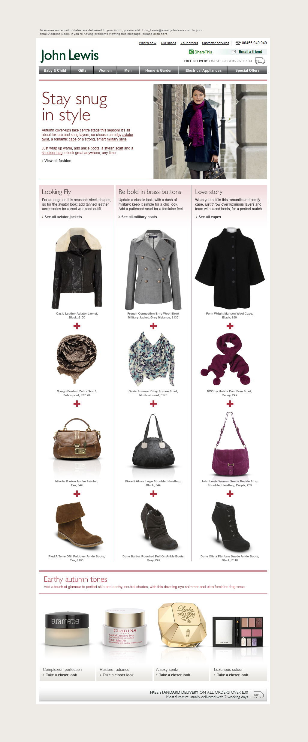 These were timed between the main seasonal campaign communications where shoppers were interested in more than one trend or theme, and the business needed to promote a lot of products. These could be much more reactive and focus on trends or themes as they emerged. Grouping products into themes allowed multiple product categories to be displayed showcasing the breadth of product available.