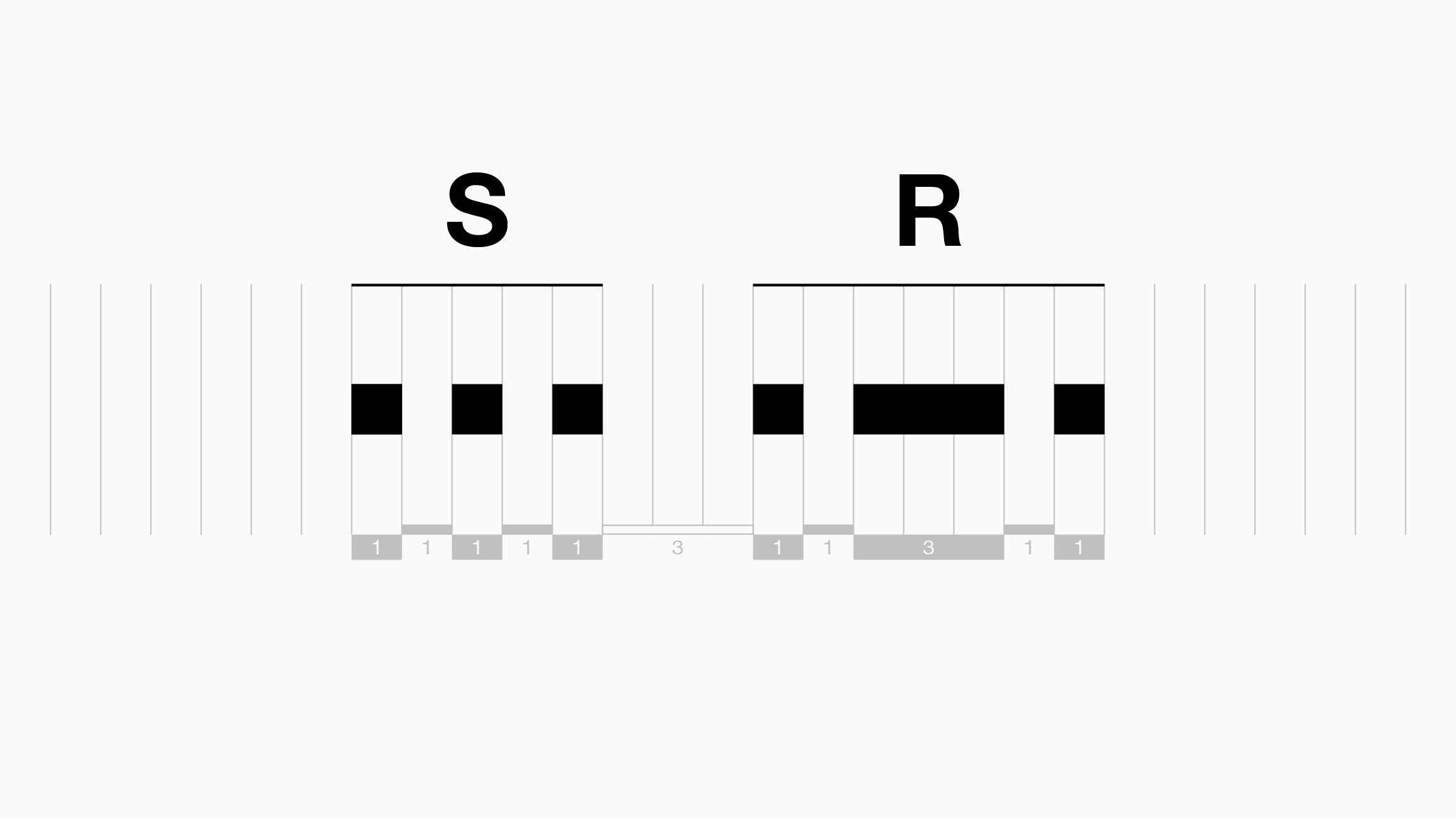 The timing scale of Morse code informed the typographic spacing. The one-unit and three-unit measurements used to construct the ‘S’ and ‘R’ were mapped to cap height and line height, creating visual synergy between the dynamic marks and typography while maintaining flexibility across applications.