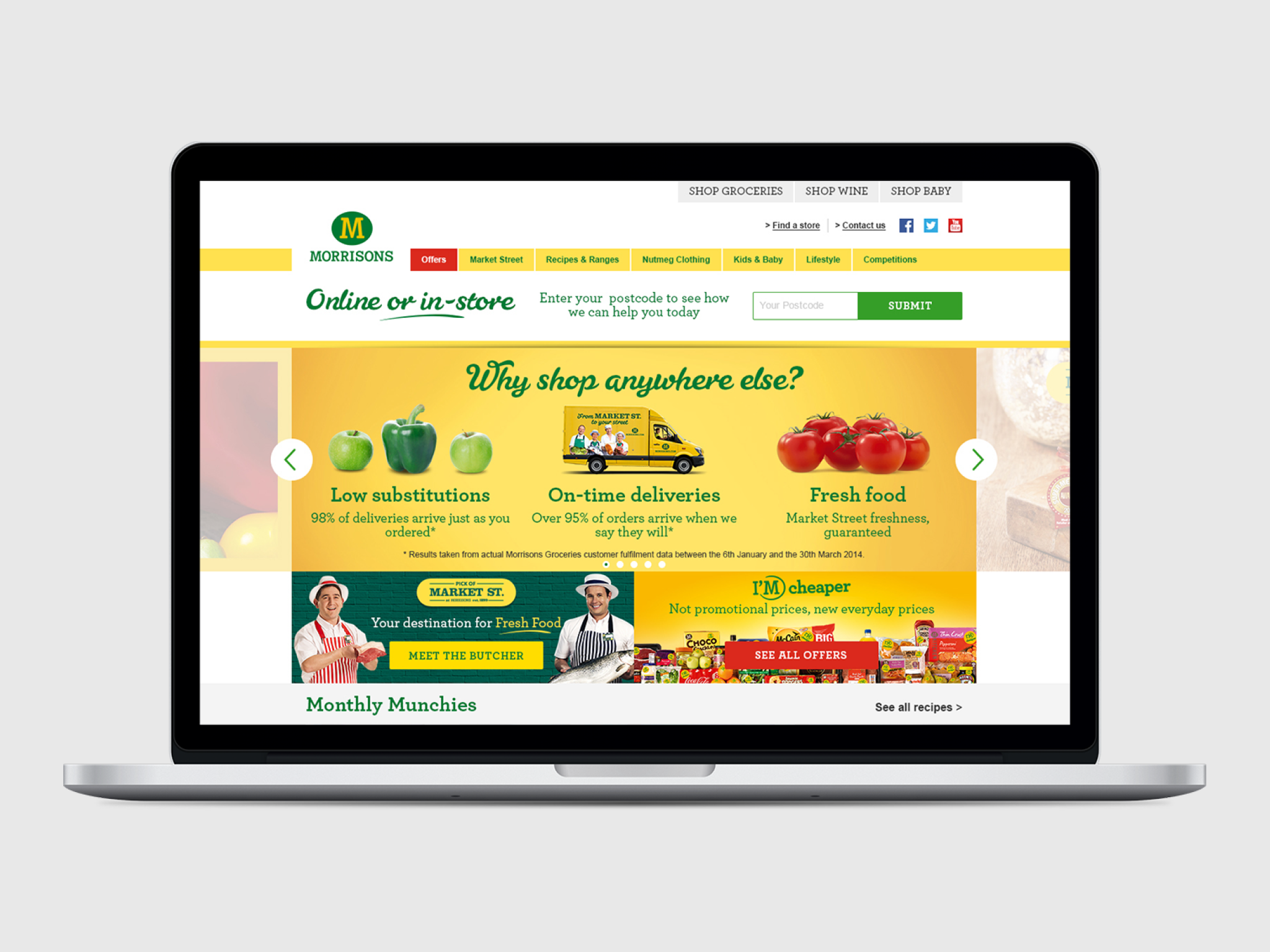 Morrisons was late to offer online shopping, ending up with two separate websites: one for editorial content (like recipes and store info) and another for shopping, which was based on Ocado's platform. This created a split experience for customers.