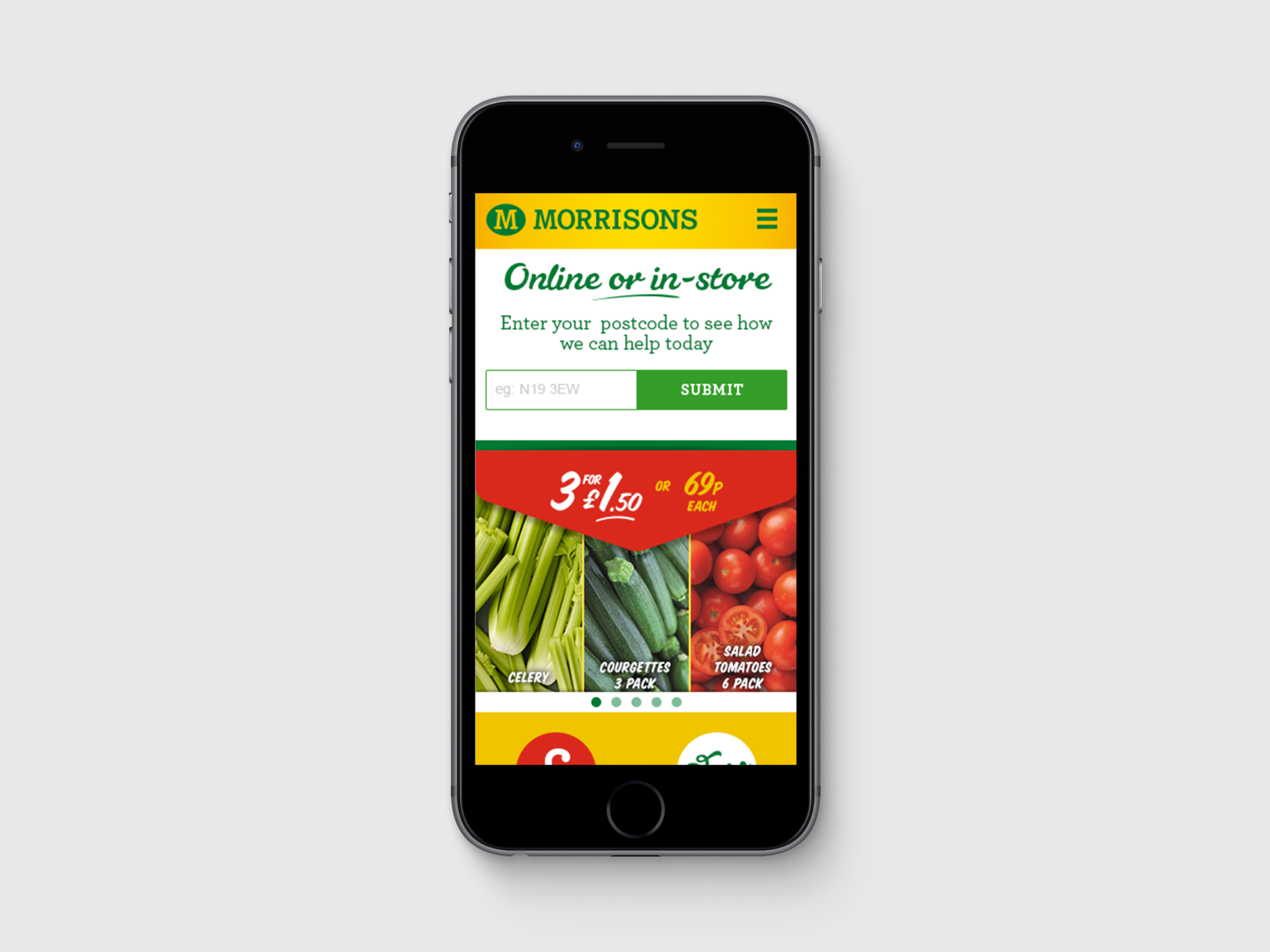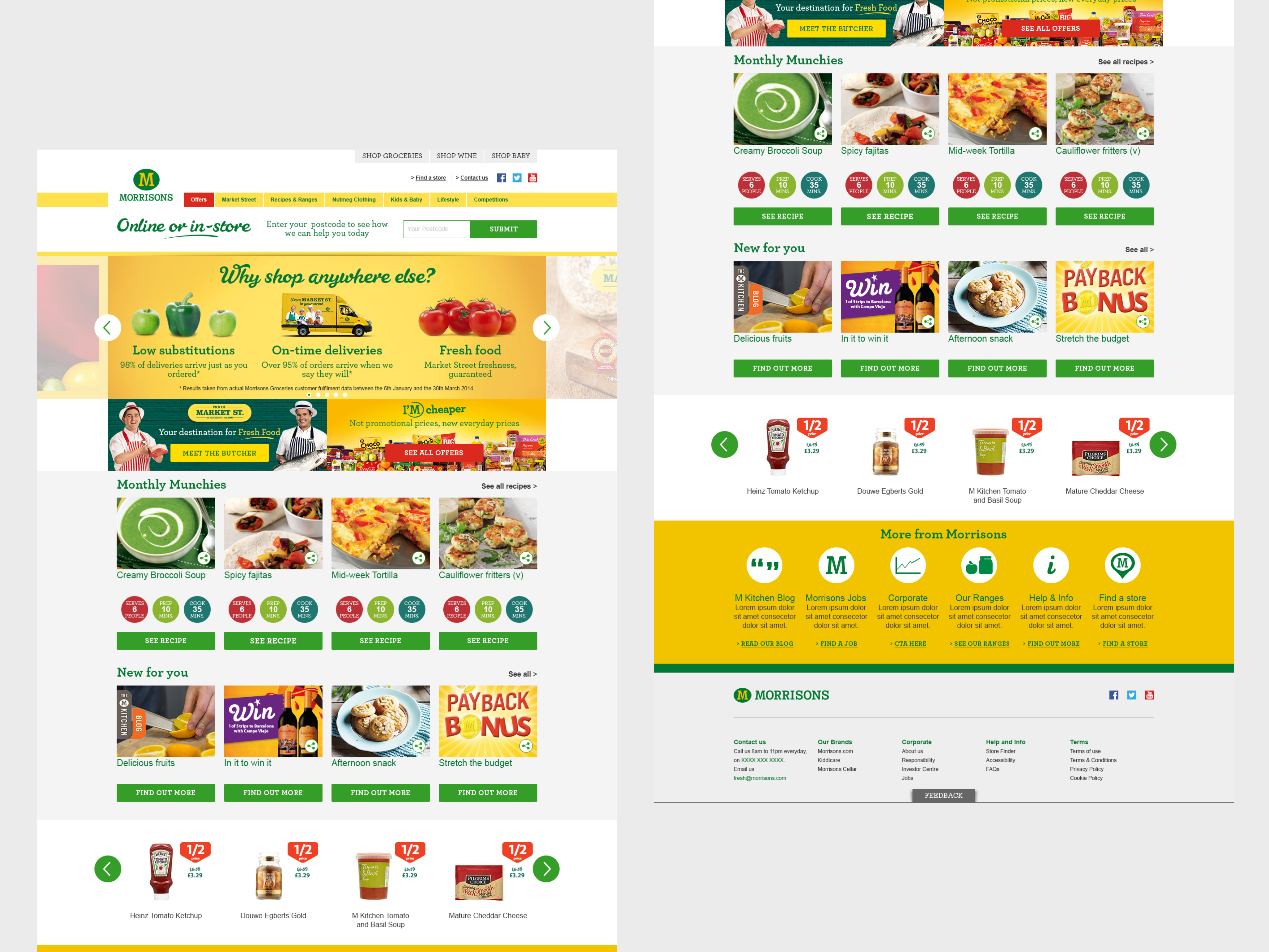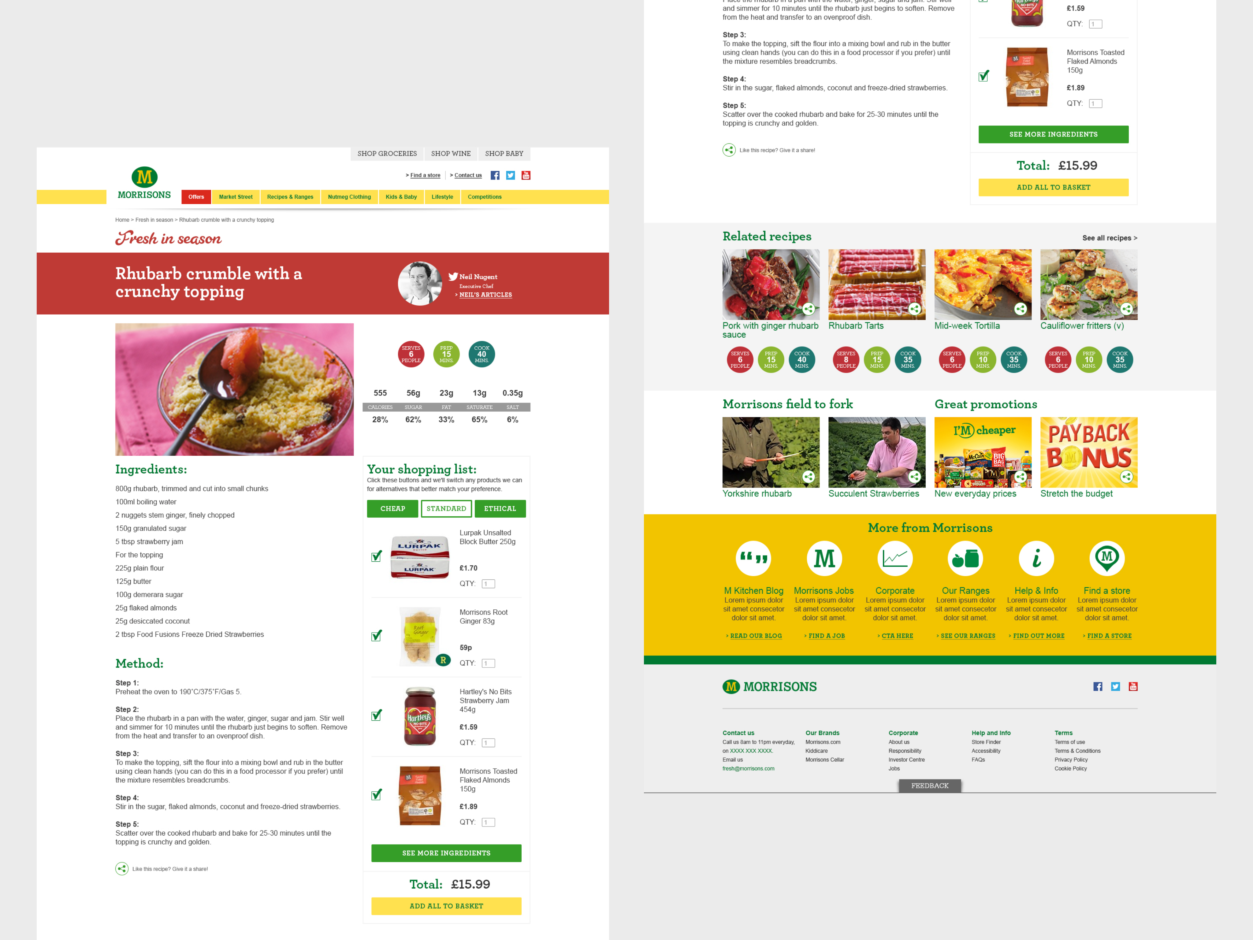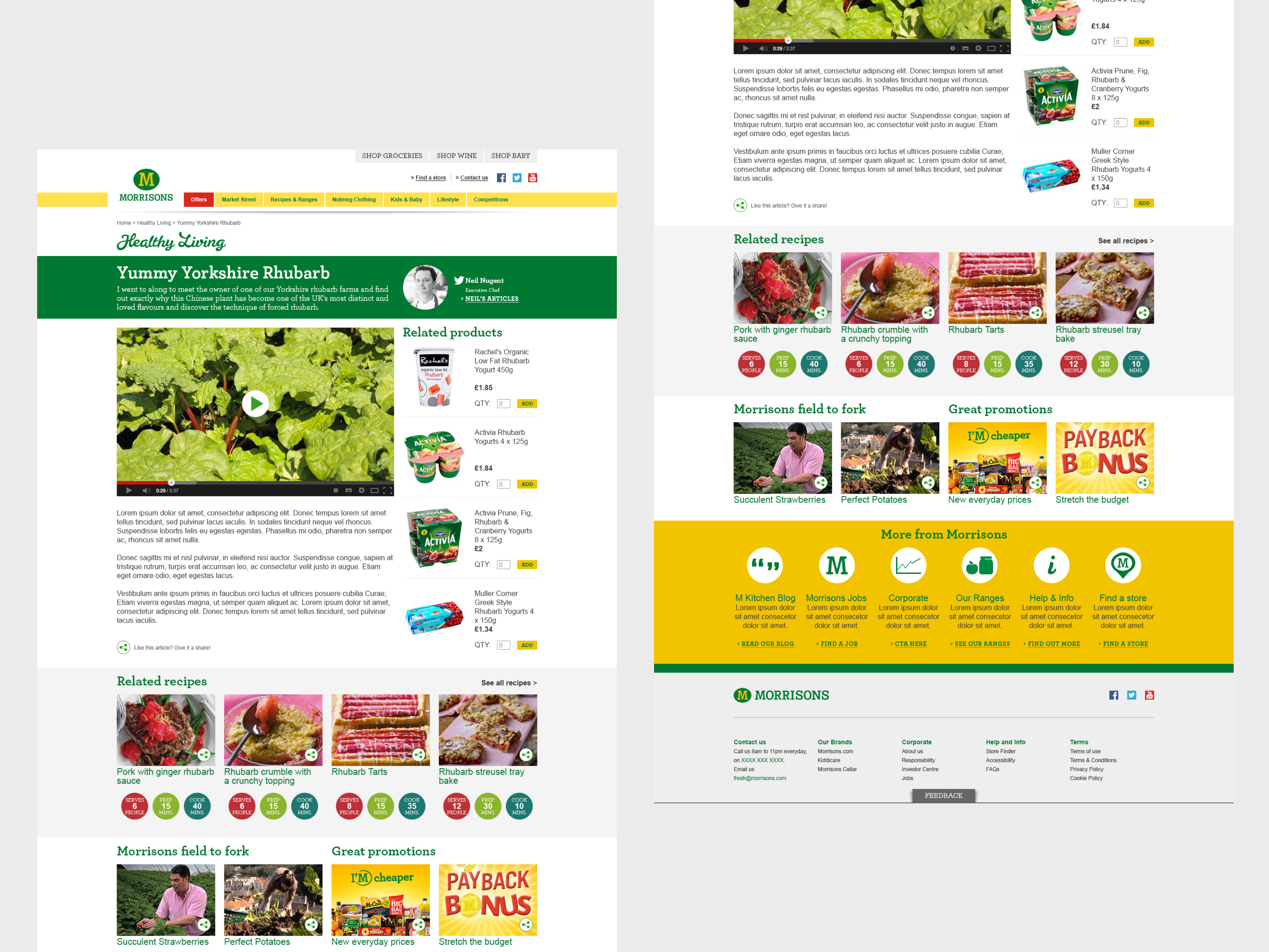 Conceptual look at the Morrisons shopping experience. Unifying shopping and editorial content. The outcome of this brief was used to define Morrisons digital brand guidelines.